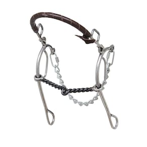 Um Freio modelo Levantador Hackmore na qualidade M Reis, com hastes articuladas em aço inox, entrada para cabeçada, bocal torcido também articulado para melhor resposta do cavalo, barbela em corrente com fechamento de rosquear entre as alavancas e parte para encaixar o chanfro reforçada com couro. Um freio feito para pessoas mais habilidosas e com mãos mais sensíveis na hora de domar o cavalo.