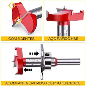 Fresa Broca Forstner 35mm para Dobradiça Caneco com Limitador de Profundidade Fresa com dente de vídea/metal haste 8mm diâmetro 35mm duro tipo Forstner indicada para trabalhos em madeira e derivados na colocação de dobradiças tipo caneco. - Marca: Dremax - Referência: BRF35 - Fresa dobradiça tipo caneco 35 mm com 3 dentes - Fresa com dente de vídea/metal duro indicada para trabalhos em madeira e derivados na colocação de dobradiças tipo caneco - Possui 3 dentes de vídea/metal duro, conferindo maior durabilidade - Diâmetro do corte: 35mm - Haste diâmetro x comprimento :8 mm x 20 mm / 12 mm x 25 mm - Garantia: 90 dias contra defeitos de fabricação Marca: Dremax