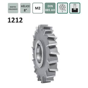 Fresa circular, corte 3 lados, dentes cruzados e alternados, aço rápido M2, DIN 885 AH, Cód. 1212, Hélice 8.