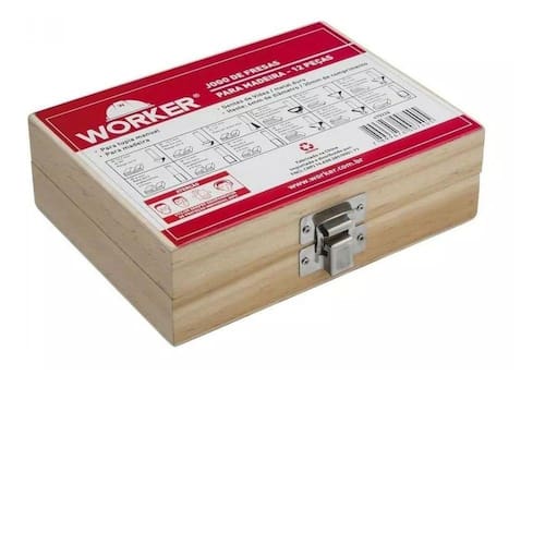 O Jogo de Fresas da Worker é indicado para trabalhos com madeira e tupia manual. Possui 12 peças diferentes, facilitando assim o trabalho a ser realizado. Possui ferramentas para rasgos V, U , rabo de andorinha, chanfro com rolamento, entre outras. Produto com excelente qualidade. CARACTERÍSTICAS Marca: Worker Modelo: 470228 Comprimento: 17cm Peso: 0,500kg Altura: 6cm Dimensões: 6x13x17cm Grão: Não Bitola: Não Força de Aperto: Não Garantia: Contra defeitos de fabricação Ean: 7899676007405