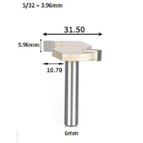Fresa T Serrinha Debrum Haste 6Mm Corte 5/32 Fresa Slot / Serrinha / Serra debrum Indicada para usinagem de MDF, MDP, compensados e outros materiais madeirados para encaixe de perfis puxadores, testeiras, arremates e fundos de armários e gavetas. Aste de 6mm Corte 5/32 3,96mm
