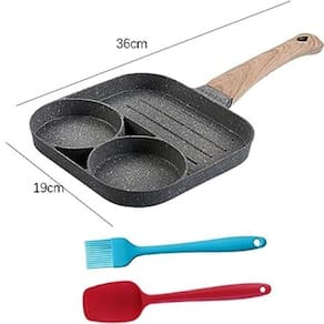 Design exclusivo: a diferença das frigideiras comuns com as quais nossas frigideiras para ovos são projetadas com 3. A frigideira frita permite que você cozinhe 3 alimentos ainda mais diferentes simultaneamente, em vez de ter que limpá-lo sempre que grelhar um. É fácil para você fritar varanda, ovos, panquecas e bifes separadamente. O interior tem design listrado que deixa mais delicioso.