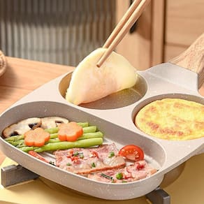 Ampla gama de usos: A Frigideira 3 em 1 é perfeita para cozinhar omeletes, hambúrgueres, bacon, panquecas e qualquer outra coisa que você quiser o que pode tornar o cozimento mais rápido e fácil.