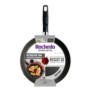 A Frigideira Rochedo Robusta com capacidade para 3,3 litros, é ideal para quem busca durabilidade, resistência e qualidade na cozinha. Destaca-se por seu revestimento antiaderente Resist 3X, uma tecnologia inovadora que garante maior robustez e performance. O revestimento é reforçado com partículas minerais, proporcionando uma camada mais resistente e prolongando a vida útil da panela, ideal para quem deseja um produto que dure por anos.