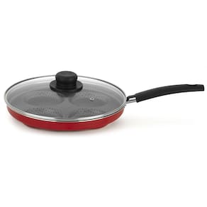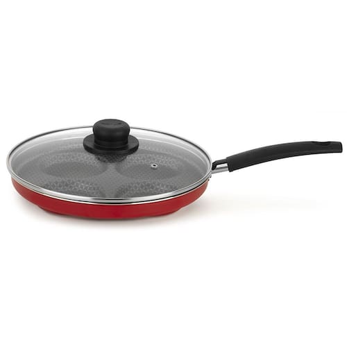 Frigideira 4 Ovos com Tampa Gourmet Vermelho 28 cm em Alumínio com Revestimento Interno Antiaderente Multiflon - Na sua casa!