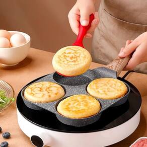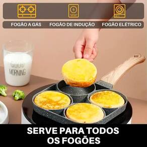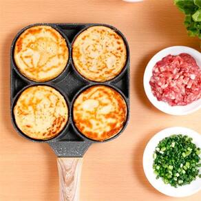 Frigideira 4 Partes Multiuso Com Divisórias Antiaderente Omeleteira Cabo Madeira Panquequeira Resistente Multifuncional