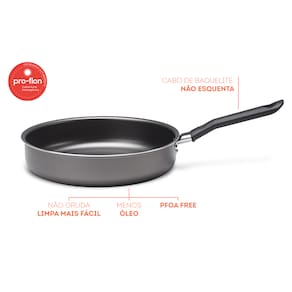 Para acompanhar as suas necessidades, a frigideira alta da linha Garlic está disponível em um formato diferenciado, mais alta e robusta, com Ø 24x5,5 e capacidade de 2 Litros. A estrutura de alumínio dissipa melhor o calor cozinhando o alimento por igual e mais rapidamente. Já o revestimento interno antiaderente evita que o alimento grude mesmo com uso reduzido de óleo. O material também facilita a limpeza. Sua segurança está garantida com o cabo de baquelite, que não aquece. A pintura externa poliéster está disponível nas cores vermelho e grafite. O ciclo de vida do produto pode variar conforme frequência e intensidade da utilização. O produto deve ser descartado (livre de materiais orgânicos) em coletores de resíduos seletivos. A logística reversa não é aplicável._x000D_
