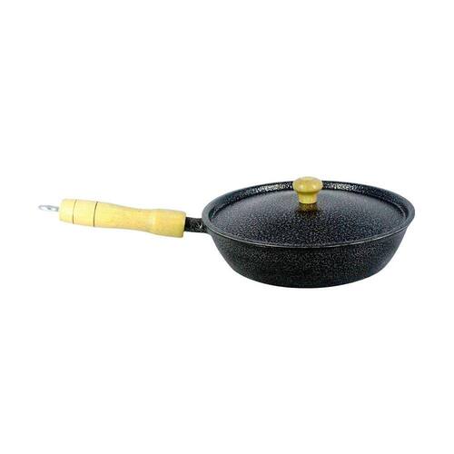 01 Frigideira Alumínio Fundido Craqueada Cabo de Madeira Preta 22cm