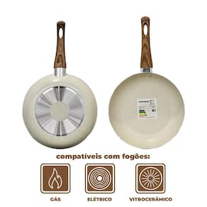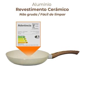 A Frigideira é produzida em alumínio na cor vanilla com revestimento cerâmico marble e classificação A do Inmetro, não gruda, é mais fácil de limpar e mais saudável, pois necessita de menos óleo para o cozimento e é livre de metais pesados.