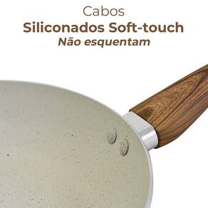 A Frigideira Sahara Vanilla possui revestimento antiaderente em cerâmica e 2,0mm espessura em sua estrutura, o que melhora o preparo de seus alimentos, pois a temperatura é dissipada de maneira uniforme e favorece o cozimento, evitando que sua comida queime facilmente. A Frigideira é produzida em alumínio na cor vanilla com revestimento cerâmico marble e classificação A do Inmetro, não gruda, é mais fácil de limpar e mais saudável, pois necessita de menos óleo para o cozimento e é livre de metais pesados. Possui cabo com acabamento siliconado Soft-Touch amadeirado, que dá um toque macio e não esquenta, trazendo um design inovador, ideal para você que gosta de sofisticação e elegância em sua cozinha. É indicada para fogões a gás, vitrocerâmico ou elétrico,