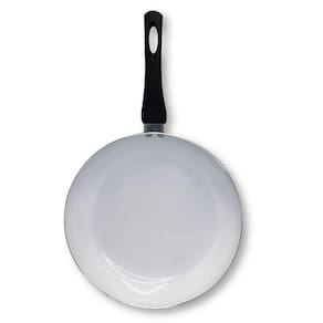 Frigideira antiaderente cerâmica não gruda e frita sem óleo Frigideira com revestimento cerâmico antiaderente e cabo de baquelite 28cm - preto feita de alumínio com revestimento em cerâmica, resistente a arranhões/manchas e possuindo uma tecnologia antiaderente, essa frigideira vai ser a escolha ideal para sua cozinhapermite o preparo de diversas receitas de forma mais saudável, já que não necessita de muito óleo, além de facilitar no momento da lavagem ao diminuir os resíduos dos alimentos na parte interna do produto.Conta com seu cabo de baquelite revestido em silicone, oferecendo uma boa aderência para manuseio da frigideira, garantindo maior segurança e diminuindo acidentes com queimaduras. Cuidados-não utilize espátulas, colheres, garfos, facas ou outros utensílios metálicos para manusear ou raspar alimentos, podendo causar arranhões e danos severos no revestimento;-escolha a boca da chama do fogão do tamanho adequado para as bases da panela, para que não danifique o cabo;-capacidade máxima de cozimento 2/3 da capacidade total da panela. especificações:material: alumínio e baquelitedimensões: comprimento: 47cm x diâmetro: 28cm x alt.: 5,5cmpeso: aprox. 540gcor: preto contém:01 frigideira com revestimento cerâmico antiaderente e cabo de baquelite 28cm - preto Marca: Não Informado