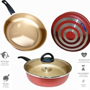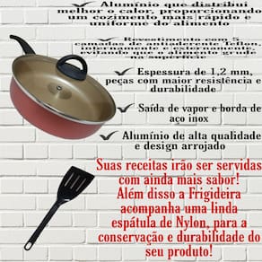 Características principais Marca Coisas & Trecos Modelo Frigideira Antiaderente N°24 Cor Preta , Vermelha e Cereja (Teflon Antiaderente) Outras características É kit: NÃO Descrição CARACTERÍSTICAS: Longa durabilidade; Não enferruja; Fácil higienização e manuseio; Simples, seguro e prático; Material do corpo em alumínio reforçado; Cor predominante: Preto, Vermelho e Cereja Antiaderente.