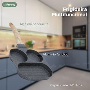 Cores: cinza escuro ou palha o envio das cores são feitas conforme disponibilidade em estoque. Comprimento da Grelha:. 17cm Comprimento da Alça:. 17cm Comprimento Total:. 33cm Itens Inclusos: 01 x Frigideira Antiaderente cinza escuro ou palha 3 partes Marca: Puracy Home