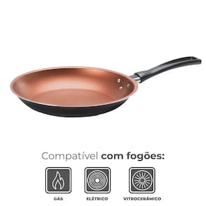 A frigideira Topázio Brinox é produzida 100% em energia renovável, apresenta estrutura em alumínio que cozinha mais rápido e por igual, reduzindo o consumo de gás e energia pois a temperatura baixa ou moderada já é suficiente para um uso perfeito da frigideira por se aquecere rápida e gradualmente. Seu cabo é de baquelite que não esquenta, e possui revestimento antiaderente pro-flon que não gruda, é fácil de limpar e livre de PFOA e com Classificação A no Inmetro. Nessa versão disponível na cor preta, já seu revestimento cerâmico interno é cobre