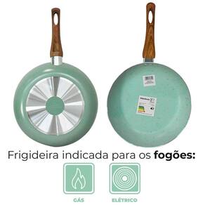 Características: Marca: Casambiente Modelo: Sahara Chama Verde Material da Frigideira: Alumínio Material do Cabo: Baquelite Siliconado Soft-Touch Revestimento Interno: Cerâmico Espessura: 2,0mm Cor: Verde Claro Quantidade: 1 peça
