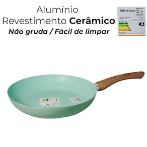 Características: Marca: Casambiente Modelo: Sahara Chama Verde Material da Frigideira: Alumínio Material do Cabo: Baquelite Siliconado Soft-Touch Revestimento Interno: Cerâmico Espessura: 2,0mm Cor: Verde Claro Quantidade: 1 peça
