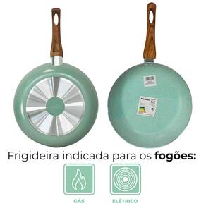 Características: Marca: Casambiente Modelo: Sahara Chama Verde Material da Frigideira: Alumínio Material do Cabo: Baquelite Siliconado (Soft-Touch) Revestimento Interno: Cerâmico Espessura: 2,0mm Cor: Verde Claro Quantidade: 1 peça