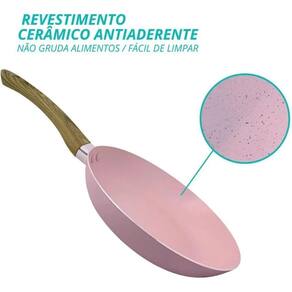 Características Principais: Tamanho: 22 cm 1 peça Cor: Rosa Design moderno e alegre para sua cozinha Material do corpo: Alumínio de 2,0mm de espessura Garante aquecimento rápido e uniforme Revestimento cerâmico: Antiaderente, não tóxico e fácil de limpar Cabo siliconado soft-touch : Confortável e resistente ao calor Compatibilidade: Fogão a gás e elétrico NÃO indicada para indução