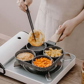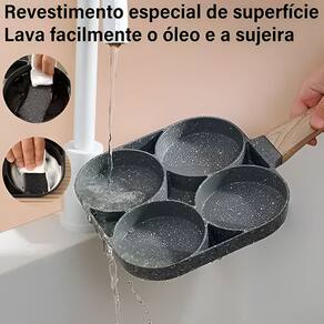 - Linha: Frigideira antiaderente com quatro divisórias circulares.