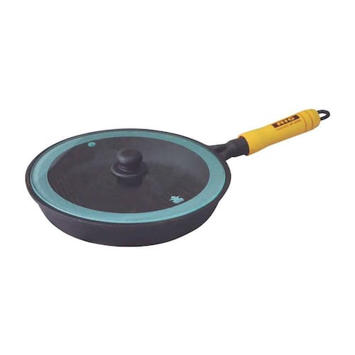 Frigideira Cabo Madeira Ferro Fundido Tampa de Vidro N20