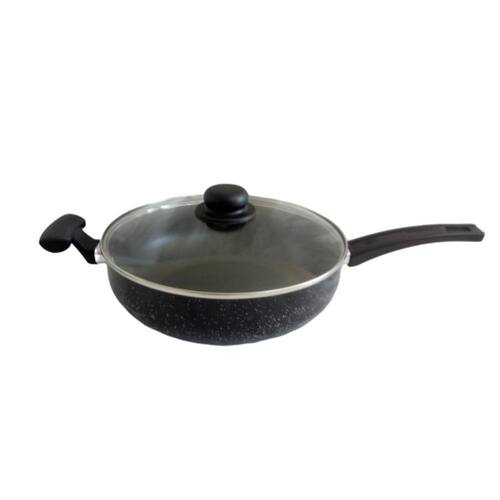 Frigideira Com Antiaderente Preto Poa Alusol A Metalúrgica Torsol vem atuando no mercado de fabricação de utensílios domésticos em alumínio desde 1975. Com amplo conhecimento e técnicas continuas de aperfeiçoamento de nossos produtos,para obter cada vez mais a total satisfação de nossos clientes. 6 Camadas de Antiaderente. Alumino 100% de pureza. Cabos de Baquelite. Tampa de Vidro temperado. Com furo na tampa para saída do vapor. Pintura Epox. Base antiderrapante. Cor: Preto Poa Alumínio de 2 mm. Cabo de 16 cm.