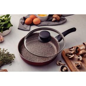A Linha Paris agora teve seu design remanejado e apresenta estampas internas que vão deixar a sua cozinha ainda mais completa. O toque que faltava agora chegou com o relançamento desta Linha que já é querida por muitos. Mas pode ficar tranquilo que a qualidade permanece, afinal, a Tramontina sabe muito bem o que você precisa em sua cozinha Além disso, suas alças e pegadores permanecem feitos em material antitérmico, com o clássico conforto e a segurança no momento de manuseio dos itens. Perfeita para quem gosta de preparar receitas deliciosas com a família e amigos, as peças são acompanhadas de um revestimento antiaderente que deixa o cozimento dos alimentos e a higienização da sua frigideira muito mais simples. Lembre-se que para manter a qualidade do produto é necessário evitar objetos metálicos, sempre preferindo utensílios de silicone, nylon ou madeira. Características: Marca: Tramontina Código do Fabricante: 28505722 Linha: Paris Cor: Vermelho Material: Alumínio Material do Cabo: Baquelite Antiaderente: Sim Espessura: 1,8mm Capacidade: 1,7L Diâmetro: 22cm Fogões Compatíveis: Gás, elétrico e vitrocerâmico Compatível com Lava-louças: Sim Material da Tampa: Vidro temperado Saída de Vapor: Sim