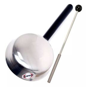 Cor: Brilhante no fundo, metal cru na parte de dentro, pintura preta no cabo