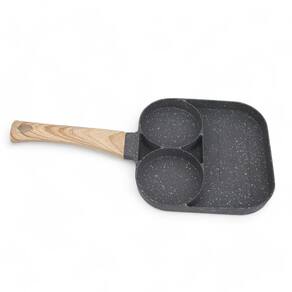- Linha: Frigideira antiaderente com três divisórias circulares.