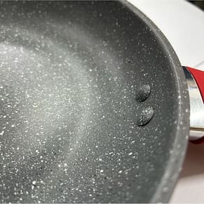 - Diâmetro: 20 cm; - Cor: Vermelho Marmorizado; - Material: Alumínio Cerâmico;