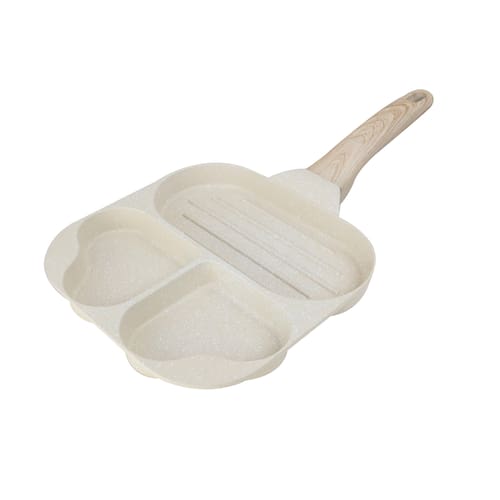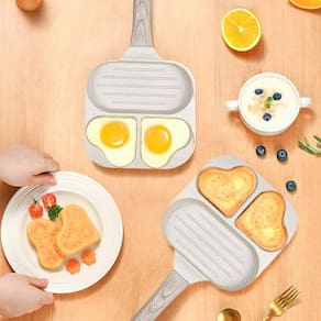 Fabricado em alumínio de alta qualidade e material de cabo de madeira, o que permite uma distribuição uniforme e eficiente do calor. Revestimento antiaderente, bom ajudante para você fritar alimentos. Design de 3 orifícios, conveniente para fazer 3 preparos ao mesmo tempo. Perfeito para fazer ovos fritos, carnes, legumes salteados, omeletes, etc. Uma ótima ferramenta de cozinha.