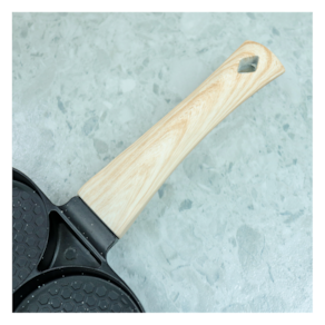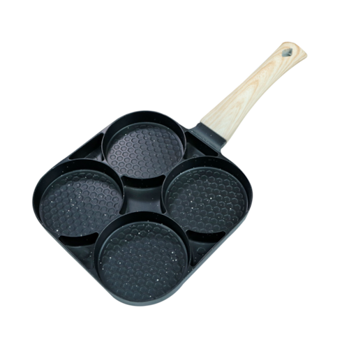 Revestimento antiaderente, bom ajudante para você fritar alimentos. Design de 4 orifícios, conveniente para fazer 4 preparos ao mesmo tempo. Perfeito para fazer ovos fritos, carnes, legumes salteados, omeletes, etc. Uma ótima ferramenta de cozinha.