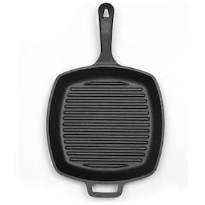 VERSATILIDADE Esta frigideira quadrada de ferro fundido CHEF 10,5 pode ser usada em um fogão, em um forno, grelha ou mesmo ao ar livre em uma fogueira. Sele, asse ou frite deliciosas refeições com esta frigideira de ferro fundido ou até mesmo use como prato de servir da cozinha à mesa. PRÉ TEMPERADO Nossa melhor frigideira de ferro fundido é pré temperada para garantir o uso diário de baixa manutenção. Simplesmente lave à mão com detergente suave, seque bem com uma toalha e esfregue a panela de ferro fundido com óleo vegetal. DISTRIBUIÇÃO IGUAL DO CALOR Esta frigideira de ferro fundido temperado de 10,5 oferece uma distribuição uniforme do calor e excelente retenção de calor para todas as suas deliciosas receitas. SUPERFÍCIE ANTI ADERENTE Mantenha nossas panelas de ferro fundido bem lubrificadas e devidamente pré aquecidas para garantir que os alimentos não grudem. Pendure convenientemente em sua cozinha com furos de alça para zenamento ideal. FRIGIDEIRA COM NELADAS Cozinhe com esta frigideira quadrada de ferro fundido com nervuras para elevar os alimentos deliciosos da gordura e do óleo. Desfrute de marcas autênticas de grelhados em vegetais e carnes e impressione seus convidados no jantar