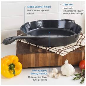 Projetado para eficiência Distribui uniformemente e retém o calor O interior de esmalte de carvão vegetal brilhante não reativo é naturalmente resistente à aderência e para utensílios de metal Exterior de esmalte fosco de carvão durável resiste a lascas e rachaduras e facilita a limpeza para Forno, Fogão, Grill Tempo de vida limitado Marca: Não Informado