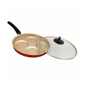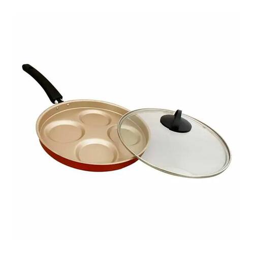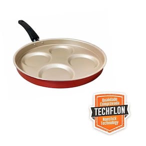 Frigideira de ovos antiaderente cereja 4 em 1 com tampa vidro Contém: 01 frigideira antiaderente 4 em 1 multiuso cereja com tampa de vidro. A frigideira multiuso 4 em 1 foi desenvolvida para trazer mais praticidade e agilidade nos momentos de cozinhar, contando com 04 divisórias. Essa frigideira é ideal para o preparo de diversas receitas, de forma prática e rápida. Com ela você frita 4 tipos de alimentos diferentes ao mesmo tempo Feito de alumínio reforçado, é antiaderente tanto na parte interna como na externa, o que facilita no cozimento e na higienização. De formato redondo, é ideal para ovos e hambúrgueres, e o melhor é que não utiliza muito óleo no preparo dos alimentos, permitindo que sua alimentação seja mais saudável. Recomendações de uso - por ser feita de alumínio, é recomendável que utilize talheres de silicone, madeira ou nylon; - unte as divisórias antes do uso; - na lavagem, deixe o utensílio esfriar e lave-o; - evite contato com buchas de aço; - nunca jogue água enquanto sua frigideira estiver quente; Essas instruções vão garantir que mantenha as propriedades antiaderentes do produto. Especificações técnicas: Material: alumínio Dimensões: 28cm diâmetro / 5cm diâmetro - cada divisória Peso: 850g aprox. Cor: vermelho cereja. - contém cabo em material resistente; - é antiaderente.