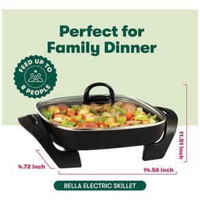Dê adeus às suas panelas antigas e dê as boas-vindas à mais nova adição à sua cozinha: a frigideira elétrica com tampa da BELLA! Com revestimento cerâmico único e oito vezes mais durável, esta frigideira grande e funda de alumínio fundido tem uma base resistente e uma tampa de vidro temperado que pode ser lavada na lava-louças, tornando-a durável e fácil de limpar. As alças com toque frio evitam queimaduras, e o design totalmente imersível facilita ainda mais a limpeza. A construção de titânio reforçado garante uma resistência excepcional, durabilidade e resistência a riscos, mesmo com utensílios de metal. Além disso, esta incrível frigideira com tampa é livre de PTFE e PFOA, sendo segura para você e o meio ambiente. E para aqueles momentos em que precisar de mais precisão, a sonda removível com um botão de temperatura da frigideira elétrica permite ajustar o calor e criar refeições incríveis todos os dias. Com sua superfície grande e extra funda, nossa frigideira elétrica com tampa é perfeita para tudo, desde refeições em família até festas e bufês. COZINHA SEM ESTRESSES! Do café da manhã ao jantar e tudo mais, esta frigideira elétrica é um item essencial para qualquer cozinheiro. Com uma base durável de alumínio fundido e uma tampa de vidro temperado fácil de limpar, esta prática frigideira é perfeita para refeições em família ou convidados. PARA FAMÍLIAS Asse, frite, cozinhe no vapor ou use como um servidor de bufê... com a frigideira elétrica da BELLA, as possibilidades são infinitas! Seja preparando um prato favorito da família ou experimentando novas receitas, nossa frigideira grande pode fazer de tudo, como omeletes, risotos e muito mais. SUPER RESISTENTE Graças ao seu reforço de titânio premium, esta grande frigideira elétrica é ultra resistente e pode lidar até com os trabalhos de cozinha mais difíceis. Além disso, ela aquece 30% mais rápido do que as frigideiras regulares, e sua superfície resistente a riscos com certeza durará mais. TEMPERATURA AJUSTÁVEL Sem mais adivinhações ou comida queimada. Com nossas frigideiras elétricas, você sempre estará no controle. A sonda removível com botão de fácil utilização permite ajustar a temperatura com precisão para criar pratos deliciosos perfeitos toda vez. LIMPEZA FÁCIL Sem mais esfregar e raspar! A frigideira elétrica de cerâmica de titânio é totalmente imersível e pode ser simplesmente enxaguada com água morna e sabão. Por fim, a frigideira elétrica para cozinhar é livre de PTFE e PFOA, sendo saudável e segura para todos.