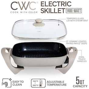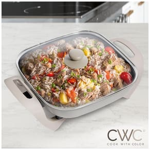Apresentamos a Frigideira Elétrica COOK WITH COLOR, seu novo companheiro de cozinha projetado para facilidade e eficiência. Operando em 120V60Hz com um potente elemento de aquecimento de 1400W, esta frigideira garante aquecimento rápido e uniforme para todas as suas criações culinárias. A frigideira possui uma espaçosa panela , ideal para preparar grandes refeições para a família ou convidados. A tampa de vidro permite fácil monitoramento sem precisar levantar, mantendo os sabores e a umidade para resultados consistentemente deliciosos. Graças ao seu design avançado, a frigideira opera com baixo ruído e vibração, enquanto o furo de ventilação embutido libera efetivamente o calor em excesso, mantendo condições de cocção ideais e prolongando a vida útil do eletrodoméstico. A Frigideira Elétrica COOK WITH COLOR oferece limpeza e manutenção sem esforço com sua superfície antiaderente revestida de cerâmica livre de PFOA. Basta limpar a superfície com um pano úmido ou lavar com uma esponja para uma limpeza completa. Seja em casa ou em um restaurante, esta frigideira é valorizada por sua versatilidade e funcionalidade avançada. Atualize sua cozinha com a Frigideira Elétrica COOK WITH COLOR e desfrute da conveniência e eficiência que ela traz para suas preparações culinárias.