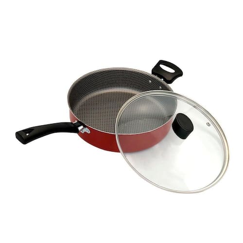 Frigideira enjoy reta 20cm com tampa de vidro - vermelha com seu design inovador e funcional, a frigideira proporciona uma distribuição de calor uniforme, permitindo que você cozinhe seus alimentos de maneira eficiente e precisa, seja fritando, grelhando ou salteando, você terá o controle total do processo para alcançar resultados perfeitos a cada refeição.A tampa de vidro transparente permite que você acompanhe o progresso de cozimento sem precisar abrir a frigideira, mantendo o calor e a umidade ideais para pratos deliciosos. Além disso, o vidro resistente é fácil de limpar e suporta temperaturas elevadas, tornando a frigideira versátil e durável.Com uma superfície antiaderente de alta qualidade, você poderá cozinhar com menos óleo, proporcionando refeições mais saudáveis e reduzindo a aderência dos alimentos. -não esquentar a panela vazia-cozinhar com fogo médio ou baixo -usar somente utensílios de plástico ou madeira especificações:material:liga de alumínio antiaderentedimensões: comprimento: 23cm x alt.:7,5cm x diâmetro: 32cm x larg.: 20cm peso: aprox. 600g contém:01 frigideira enjoy reta 20cm com tampa de vidro - vermelha