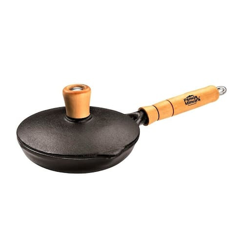 Frigideira Fast Egg Cabo Madeira e Tampa Panela Mineira 14cm A Frigideira Fast Egg Cabo de Madeira Panela Mineira é um produto prático e eficiente, que possui um design moderno, com interior abaulado, que facilita virar a comida que está sendo preparada. Sua excelente distribuição e retenção de calor, característico do ferro fundido, a torna ideal para tostar, refogar, fritar, selar e grelhar. Muito utilizada para fritar ovos. Onde usar: Pode ser utilizado em fogões a gás, a lenha, elétricos, cooktops de indução e vitro-cerâmicos. O cabo de madeira não permite que o produto seja levado ao forno, churrasqueira ou fogo de chão. Orientação de Uso e Conservação:Antes do primeiro uso: Lave com água e sabão, seque bem com um pano e leve ao fogo para remover toda a umidade. Já vem pronta para uso, então não precisa ser curada. Guarde em um local seco. Após cada uso: Lave com água e sabão, usando uma esponja ou escova para remover todos os resíduos de alimentos. Se restarem resíduos, ferva água com um pouco de detergente para soltá-los. Pintura: Revestimento atóxico que garante durabilidade e proteção prolongada, sem causar nenhum dano à saúde. Características Técnicas e Medidas: Linha: Bares e Restaurantes.Altura Com Tampa: 7cm.Altura Sem Tampa: 3cm.Material: Ferro Fundido.Modelo: Redonda.Diâmetro: 14cm.Litragem: 0,25L.Cabo: Madeira.Peso: 1,37Kg.Chapa: Lisa. Itens Inclusos: 01 Frigideira Fast Egg Pra Ovo Cabo Madeira Panela Mineira 14cm.01 Tampa em Ferro Fundido Panela Mineira 14cm.01 Batoque em Madeira Panela Mineira. Código: 602PMProdutoLojaPlast.