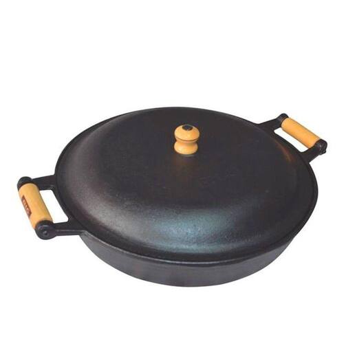 Frigideira Ferro Fundido Alça Madeira Tampa de Ferro 4 Litro Frigideira confeccionada em ferro fundido de alta qualidade, com tampa de Ferro, capacidade de 4 litros e 6cm de altura. Os produtos de ferro fundido tem como principal característica passar um pouco do ferro para os alimentos que são cozidos neles, garantindo sua necessidade do mineral para ter uma vida mais saudável. Os utensílios fabricados em ferro fundido tem a praticidade de distribuir o calor uniformemente, também apresentam boa durabilidade, preço baixo e, segundo especialistas, seu uso regular pode reduzir o risco de anemia e deficiência de ferro. Uma maneira prática de garantir a quantidade de ferro no organismo. Produto de durabilidade imensurável. Algumas das Vantagens dos Utensílios de Ferro Fundido são: Preço baixo. Boa durabilidade. Manutenção do calor dos alimentos. Facilidade de limpeza. Especificações Técnicas: Número: 35. Peso: 6,3kg. Capacidade: 4Lt. Largura: 36cm. Altura: 6cm. Código: 0830. Comprimento Total com Alças/Cabos: 44cm. Itens Inclusos: 01 Frigideira Ferro Fundido Alça Madeira Tampa de Ferro 4 Litro