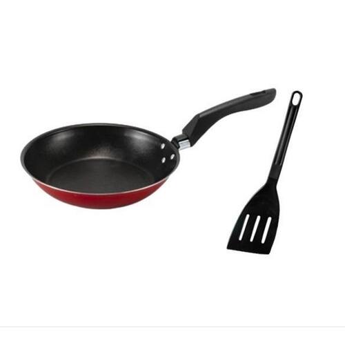 Frigideira francesa 22 cm antiaderente teflon com espatula cor vermelha com grafite Frigideira 22 cm antiaderente teflon feita de de alumínio revestido com 5 camadas de Teflon. O cabo feito de baquelite é uma opção comum, pois esse material é resistente ao calor e não conduz a temperatura para a mão do usuário. Marca: Heraa Ean: 7891371261618