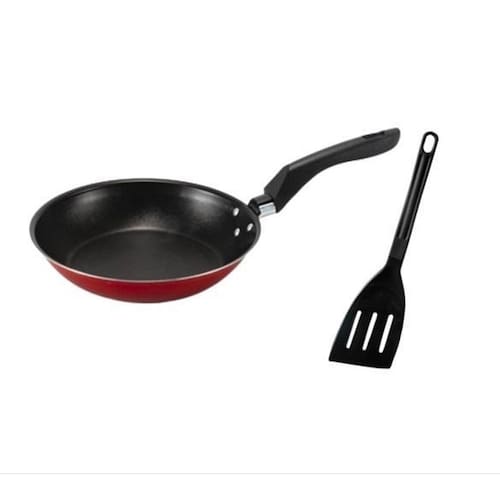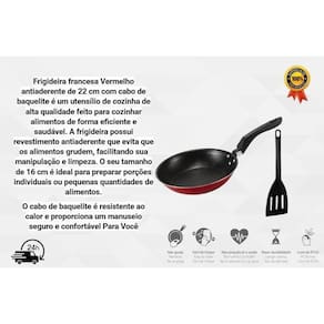 Frigideira francesa 22 cm antiaderente teflon com espatula cor vermelha com grafite
