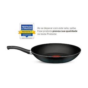 Revestimento antiaderente externo, o que facilita na hora da limpeza e que não permite manchar com as chamas do fogão.