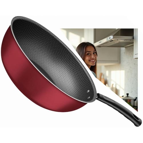 A frigideira é na cor vermelha, trazendo mais cor e estilo para sua cozinha.
