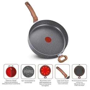 Características : -revestimento interno profissional: um antiaderente de alta performance e que permite cozinhar facilmente sem óleo; -decoração resistente: possui revestimento antiaderente externo que não permite manchar o produto com a chama do fogão, garantindo resistência e durabilidade de sua cor; -base limpa fácil: possibilita uma fácil limpeza, pois não mancha e não gruda; -para garantir que sua receita fique perfeita, as frigideiras possuem a exclusiva tecnologia Thermo-Sinal que muda de cor indicando o momento ideal para selar o alimento, deixando-o mais macio e saboroso; -espessura de 2.0mm: ideal para distribuir o calor uniformemente para um melhor cozimento; -cabo com soft touch: proporciona, além de beleza, mais conforto no manuseio. -livre de PFOA e de qualquer tipo de resíduos tóxicos que possam causar danos à saúde, a linha Rochedo Natural Stone conta com a qualidade e segurança da marca Rochedo.