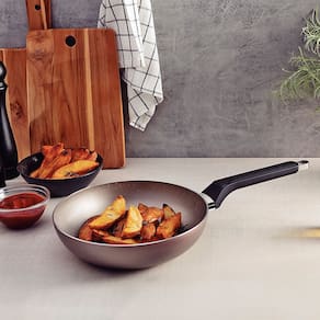 Especificações Gerais do Produto: Pegador / Cabo: Baquelite com acabamento soft touch Dimensões AxLxP (mm): 84x244,6x459,7 Cor: Amêndoa Material: Alumínio e baquelite Garantia: 90 dias junto ao fabricante Referência: 28571424 Tecnologia da Panela: Starflon Max Pode ir à Máquina de Lavar Louças?: Não Capacidade da Panela: 2,2L Linha: Milazzo Espessura: 2,8mm Revestimento Interno: Antiaderente Tipo de Fogão: Gás, elétricos e vitrocerâmicos (resistência elétrica)