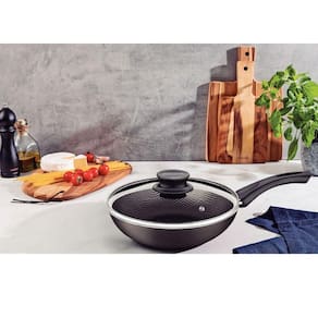Beleza e a praticidade é com a frigideira funda Tramontina Paris em alumínio com revestimento interno e externo em antiaderente Starflon Max grafite com tampa de vidro 26 centímetros 2,9 litros. Ideal para uso no dia a dia, ela é produzida em alumínio com espessura de 2 milímetros e revestimento interno e externo de antiaderente Starflon Max, ambas características que proporcionam um cozimento rápido e uniforme dos alimentos, evitam que eles grudem em sua superfície, e devido a isso, a tornam também muito mais fácil de limpar. O cabo é em baquelite antitérmico, material que não aquece e oferece maior segurança durante o manuseio. É uma frigideira durável e que pode ir à máquina de lavar louças, otimizando seu dia a dia. Escolha Tramontina e leve o melhor para dentro da sua cozinha!
