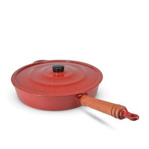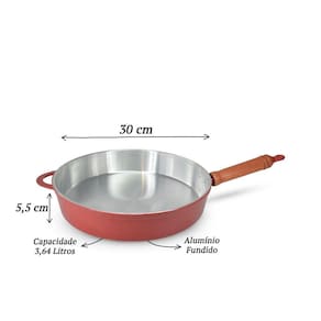 Frigideira Fundida Alumínio Batido Grosso Com Tampa 30cm Vermelho