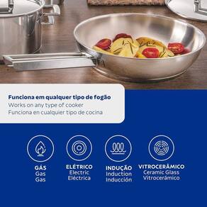 Frigideira Fundo Triplo Tramontina Brava 62415240 Inox Frigideira Fundo Triplo Tramontina Brava 62415240 Inox - Características Gerais do Produto: Dimensões AxLxP (mm): 80x251x427 Material: Aço Inox Tecnologia da Panela: Fundo Triplo Linha: Brava Capacidade da Panela: 2,1L Pode ir ao forno?: Sim, para gratinar ou finalizar pratos na temperatura máxima de 260C. Pode ir à Máquina de Lavar Louças?: Sim Tampa: Não Tipo de Fogão: Gás, elétrico, vitrocerâmico e indução