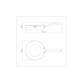 A frigideira tem design moderno e acabamento em alto brilho que permite ser levada à mesa.