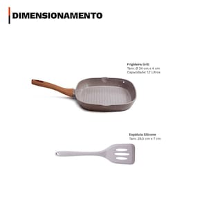 Distribuído por feheros shop Kit frigideira grill quadrada 24cm revestimento cerâmico antiaderente indução com espátula vazada silicone premium 29,5cm Atenção Este kit é a escolha ideal para quem busca preparar grelhados, carnes e legumes com praticidade, segurança e eficiência. Composto por uma frigideira grill quadrada de 24cm com revestimento cerâmico antiaderente e uma espátula vazada de silicone premium de 29,5cm, o conjunto proporciona uma experiência culinária completa, preservando o sabor e a integridade dos alimentos. O revestimento cerâmico da frigideira oferece uma superfície antiaderente mais saudável, livre de pfoa e ptfe, que facilita o preparo sem deixar os alimentos grudarem. A espátula em silicone rígido é perfeita para mexer, servir e manipular os alimentos sem arranhar ou danificar o revestimento da frigideira. Compatível com todos os tipos de fogão, incluindo indução, este kit alia eficiência térmica, conforto no manuseio e durabilidade, tornando-se indispensável para o dia a dia na cozinha. Informações do produto A frigideira grill possui design quadrado com sulcos internos que simulam o efeito da grelha, garantindo selagem perfeita e deixando os alimentos mais saborosos e visualmente atrativos. Seu cabo em baquelite com revestimento soft touch oferece segurança e conforto, pois não aquece durante o uso. A espátula vazada de silicone foi desenvolvida para resistir a altas temperaturas, proporcionando um manuseio firme e ergonômico. É fácil de limpar, não absorve odores e pode ser lavada na máquina de lavar louças, garantindo praticidade e higiene. Especificações técnicas do produto - segurança: frigideira com revestimento cerâmico livre de pfoa e ptfe e espátula em silicone que não risca o antiaderente. - alta resistência: materiais de alta qualidade que suportam altas temperaturas sem deformar. - cozimento eficiente: design quadrado com sulcos que selam e grelham os alimentos com uniformidade. - conforto: cabos ergonômicos e resistentes ao calor, oferecendo firmeza no manuseio. - fácil limpeza: espátula lavável na máquina de lavar louças e frigideira de limpeza simples com esponja macia. Ficha técnica do produto Frigideira grill quadrada - largura: 24cm x 24cm - altura: 4cm - capacidade: 1,7 litros - peso: 600g - material: alumínio com revestimento cerâmico Espátula vazada - comprimento: 29,5cm - largura: 7cm - peso: 110g - material: silicone Antes do primeiro uso - lave a frigideira e a espátula com esponja macia e detergente neutro para remover resíduos de fabricação - seque completamente com pano seco - na frigideira, aplique uma fina camada de óleo vegetal no interior, aqueça por 2 minutos em fogo baixo, deixe esfriar, lave novamente e seque antes de usar - caso deseje, pode untar a espátula com uma pequena quantidade de óleo para garantir uma maior durabilidade. Após o uso - deixe os itens esfriarem naturalmente antes de lavar para evitar choques térmicos - lave com esponja macia e sabão neutro - não utilize utensílios metálicos ou produtos abrasivos para não danificar o revestimento - a espátula pode ser lavada à mão ou na máquina de lavar louças sem perder sua resistência Itens inclusos no pacote - 01 frigideira grill quadrada 24cm revestimento cerâmico antiaderente indução - 01 espátula vazada silicone 29,5cm premium resistente Todas as fotos são reais dos produtos. Qualquer dúvida estamos à disposição. Dúvidas frequentes 01 - o produto é novo Possui 03 - como posso acompanhar o envio Você poderá acompanhar o envio do seu pedido por meio do código de rastreamento fornecido após a confirmação do envio.